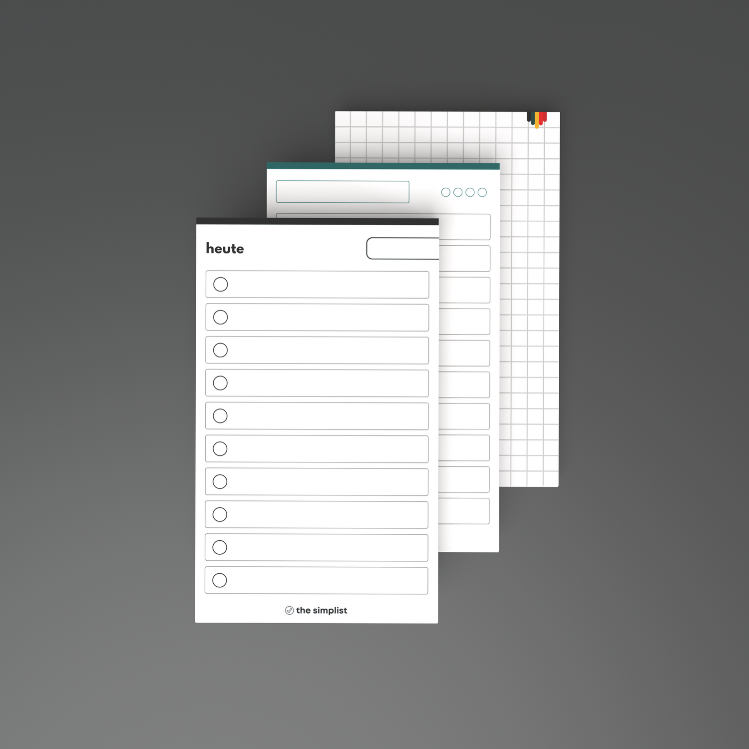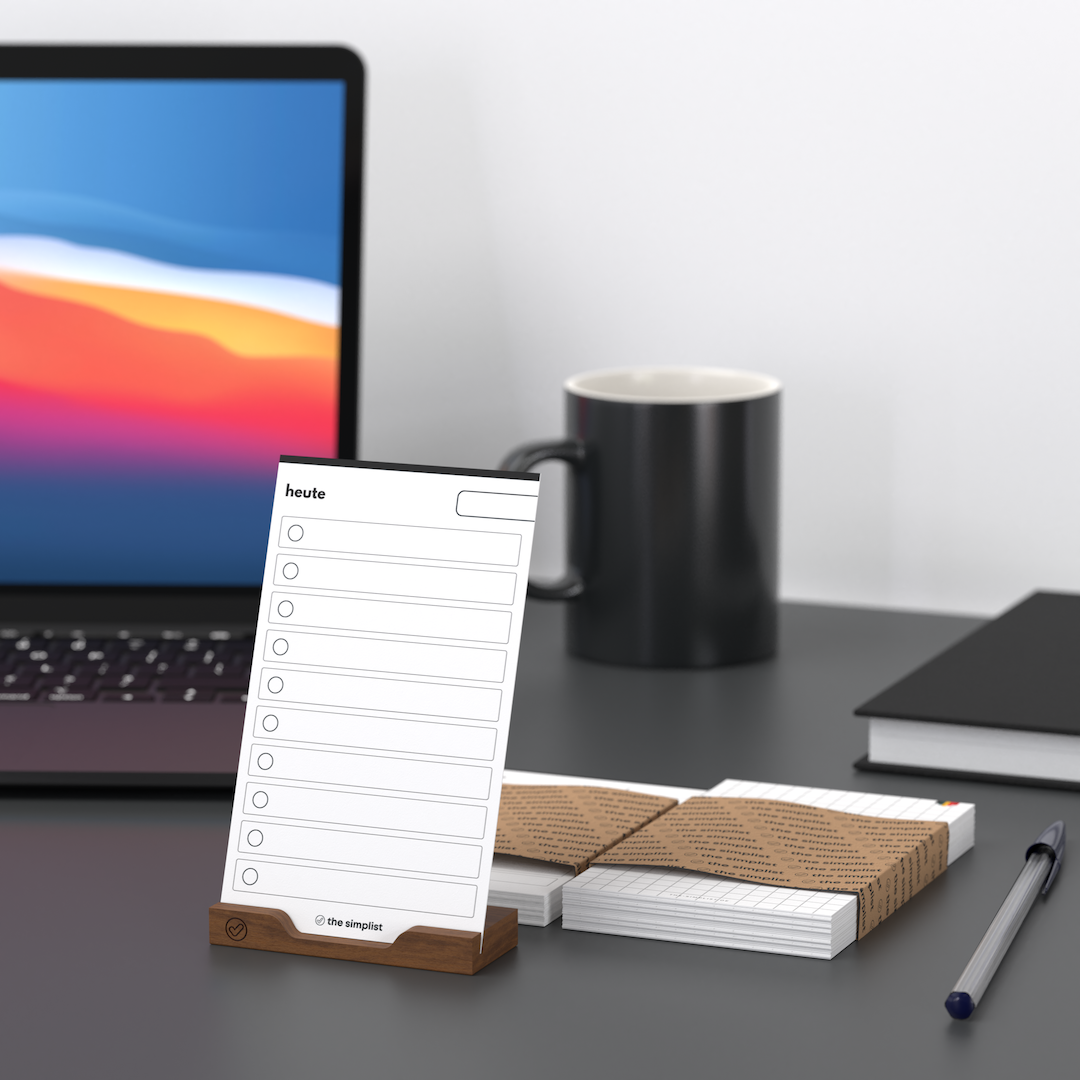 The simplist funktioniert deshalb so gut, weil die Karte die ganze Zeit im Fokus steht und die toDos nicht irgendwo in Produktivitätstools versteckt sind. Außerdem kann die Liste schnell und einfach mit einem Stift befüllt werden. Das Abhaken der einzelnen Aufgaben gibt dir ein sensationelles Gefühl!